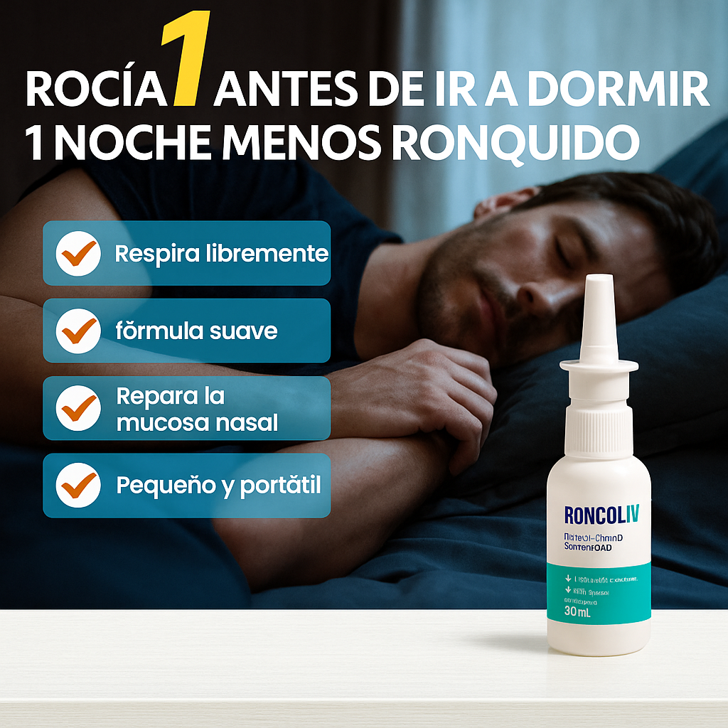 El Spray Nasal Antironquidos actúa liberando ingredientes naturales que abren y lubrican las vías respiratorias. Esto evita la vibración del paladar blando, que es la principal causa de los ronquidos. Al mejorar el paso del aire, tu respiración se vuelve más fluida y silenciosa.
