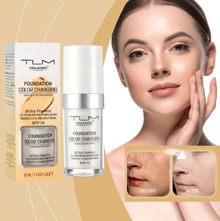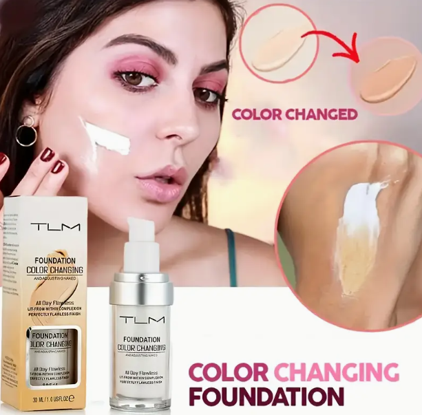 ¿Siempre te pasa que compras la base equivocada? 🤦♀️ Con TLM Color Changing Foundation ya no tendrás ese problema. Su fórmula inteligente contiene microcápsulas de color que se activan al contacto con tu piel ✨, adaptándose automáticamente a tu tono