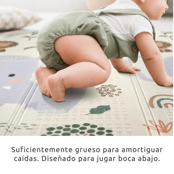 El tapete cuenta con un sistema de capas acolchadas de alta densidad que amortiguan cada caída y protegen a los niños mientras juegan, gatean o aprenden a caminar. Su superficie texturizada evita resbalones y su base antideslizante lo mantiene firme en su lugar 🧩