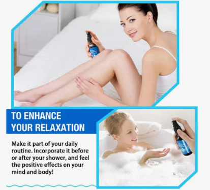 - Rocía el aceite directamente sobre la piel en la zona afectada (piernas, brazos, espalda o abdomen).
