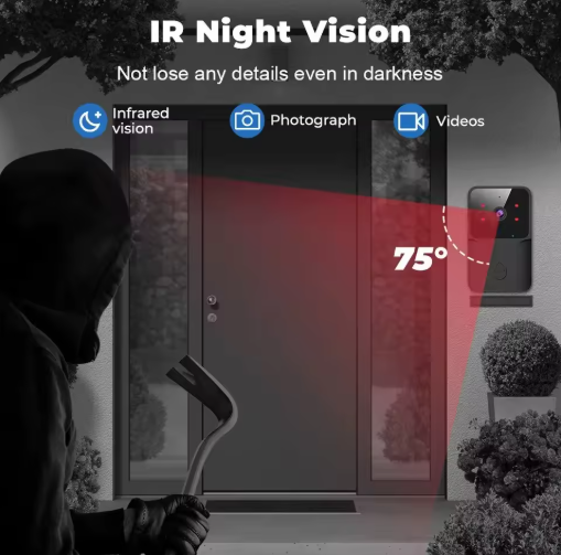 📞 Nuestro timbre cuenta con visión nocturna infrarroja automática, permitiéndote ver con claridad a cualquier hora del día o la noche. ¡Duerme tranquilo sabiendo que tu hogar está protegido las 24 horas!🎥