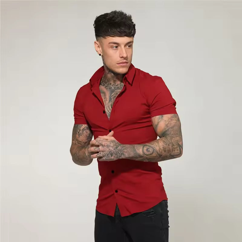 🔥 Resalta tu cuerpo, luce impecable y siente comodidad todo el día. Ya no más camisas aburridas que se arrugan, incomodan o no resaltan tu figura. Con nuestra camisa elástica manga corta tendrás estilo, confianza y confort en cualquier ocasión.