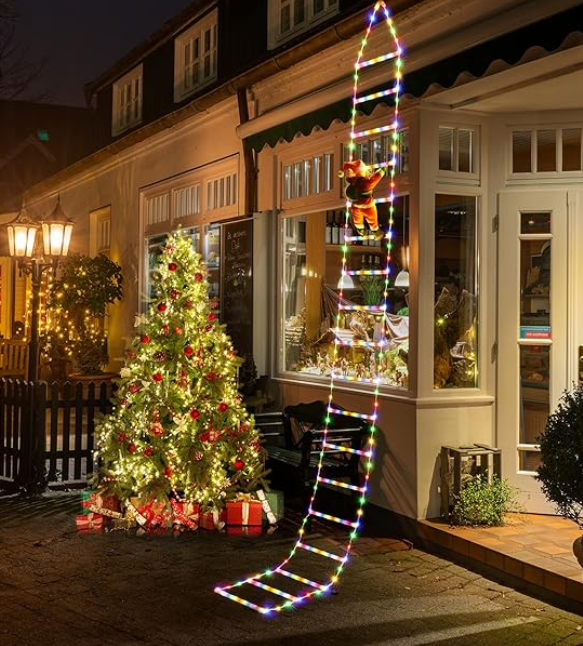 - 🪄 Diseño estático (sin movimiento): el Papá Noel no se mueve, pero su presencia iluminada da la sensación de estar escalando