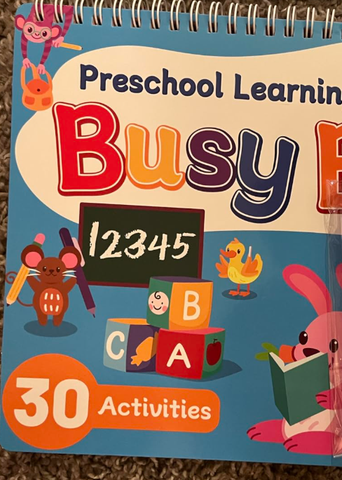 Contiene más de 30 actividades interactivas, con piezas removibles de velcro, colores, números, animales, figuras geométricas y mucho más 🎨🔢