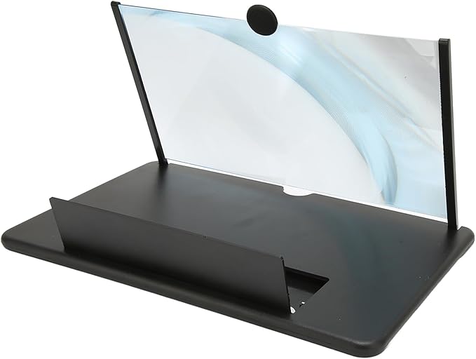 El amplificador utiliza una lente óptica tipo lupa que agranda la imagen del celular sin distorsionar. Solo colocas tu teléfono detrás de la pantalla y la lupa se encarga de hacer el resto. Sin baterías, sin configuración, sin complicaciones.