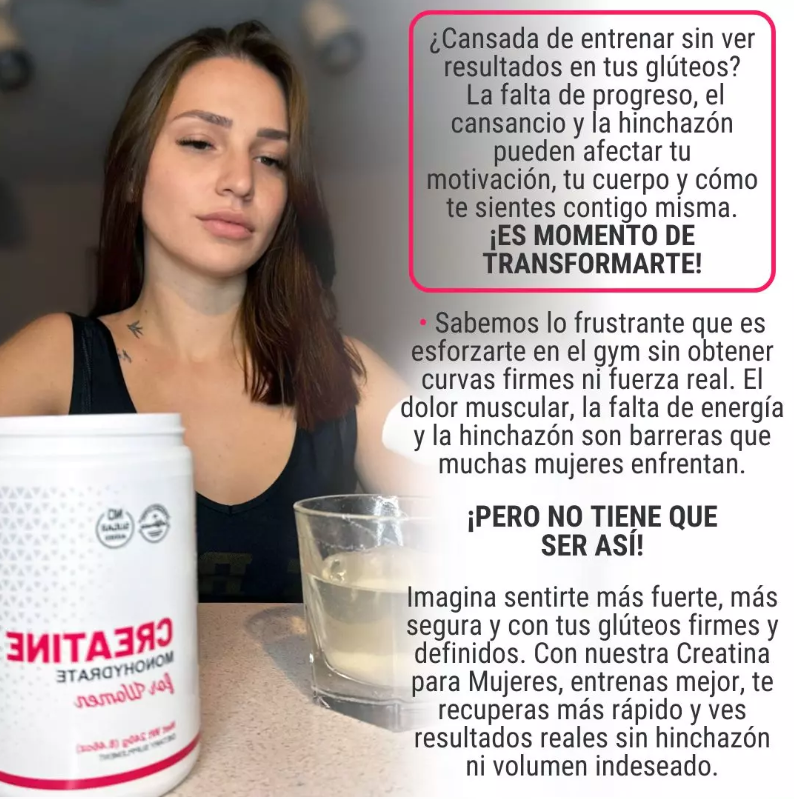 No es magia, es constancia ✨. Esta creatina para mujeres fue diseñada para ayudarte a sentirte con más fuerza, más energía y motivación 💥. Ideal para quienes quieren complementar su rutina de ejercicio y empezar a ver cambios reales en su cuerpo 🙌.